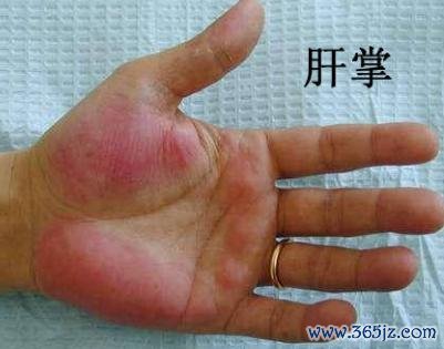 肝脏出现硬化时,一些患者出现蜘蛛痣和肝掌。蜘蛛痣同样出现于脸部、颈部、前胸、后背等部位,肝掌常出现手掌两侧。肝脏荒谬有可能引起凝血因子合成荒谬,出现牙龈出血、鼻子出血等症状。